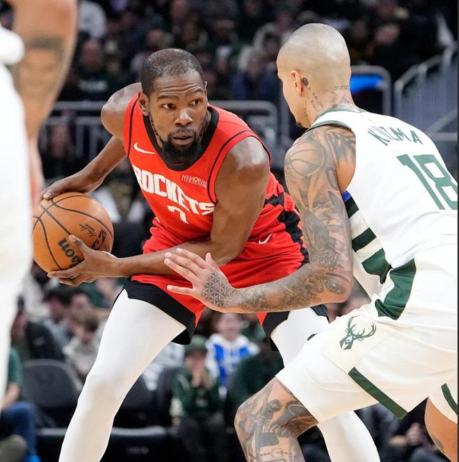 NBA战报|火箭122-115逆转雄鹿,杜兰特31分7助,字母哥37分8板