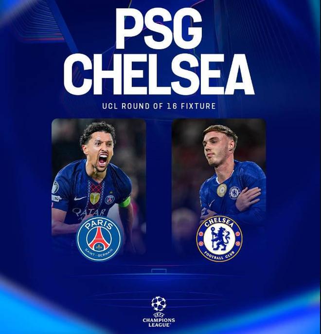 巴黎切尔西将在欧冠1/8决赛交手,去年世俱杯决赛切尔西3-0胜